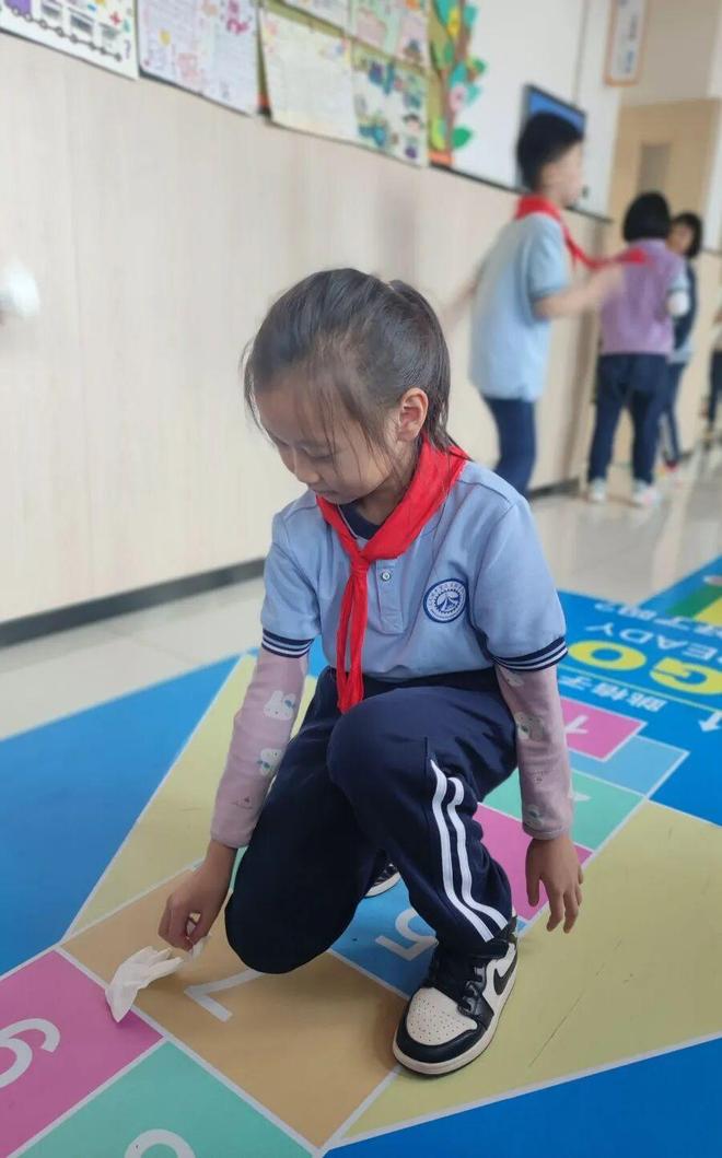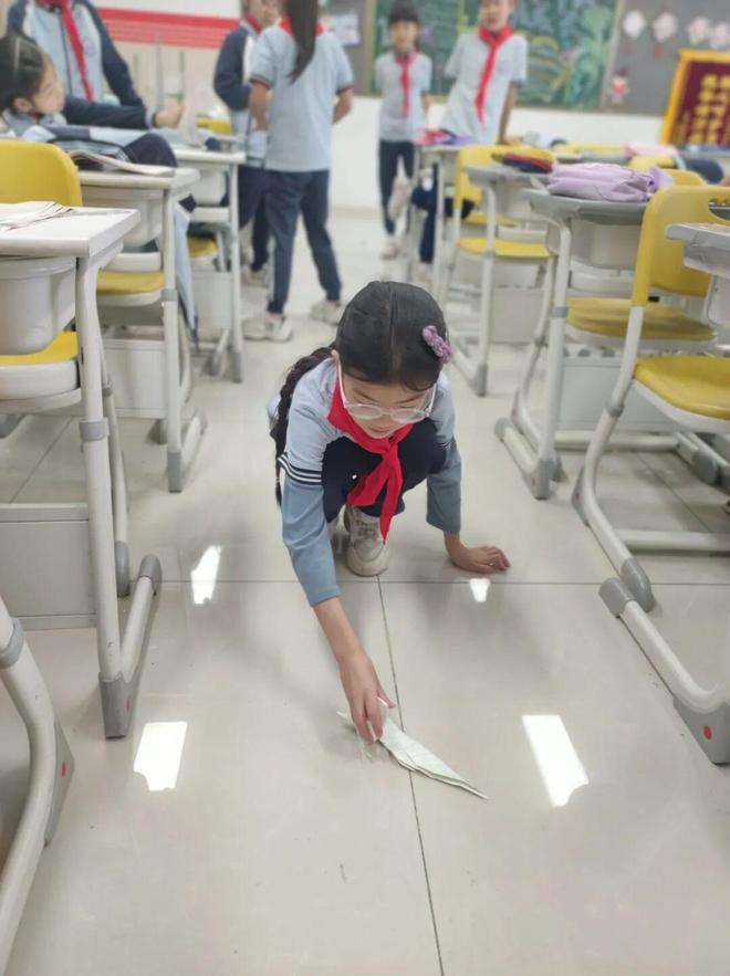 同学们主动捡起地上的纸片碎屑