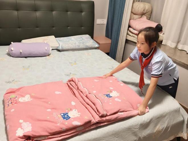 走出校园,家里也有同学们“责任清单”。打扫卫生,帮妈妈摆碗筷、刷碗,自己整理玩具,给家里的小植物浇水…… 这些看似简单的小事,却是能够培养责任感的实践课堂。二年级的蒙沛羽同学每天睡前都会自己收拾书包,把第二天要带的课本、文具一一检查好。他说:“以前总让妈妈提醒,现在我自己能做好,妈妈夸我是‘靠谱小帮手’!” 自己的事情自己做,家人的事情帮着做,就是对家庭的责任。