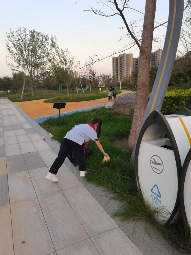 同学们主动捡拾公园里的垃圾