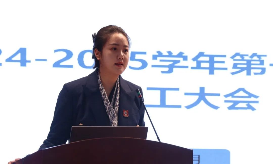 西安藤信学校常务副校长王颖用四句话和大家一起重温过去一学期的时光,她首先向全体教职工的辛勤付出表示感谢,并对本学期的各项工作表示肯定,她希望全体教职工以“明道 修身 利他 共荣”的校训精神为指导,持续为学校发展贡献自己的力量。