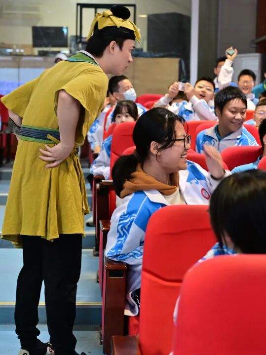 戏剧工坊环节,学子们从观者化为参与者。在“市井叫卖”的模仿中,他们以音调与节奏再现唐代市井的烟火气息;在片段演绎中,他们走上舞台,体验角色的喜怒哀乐。