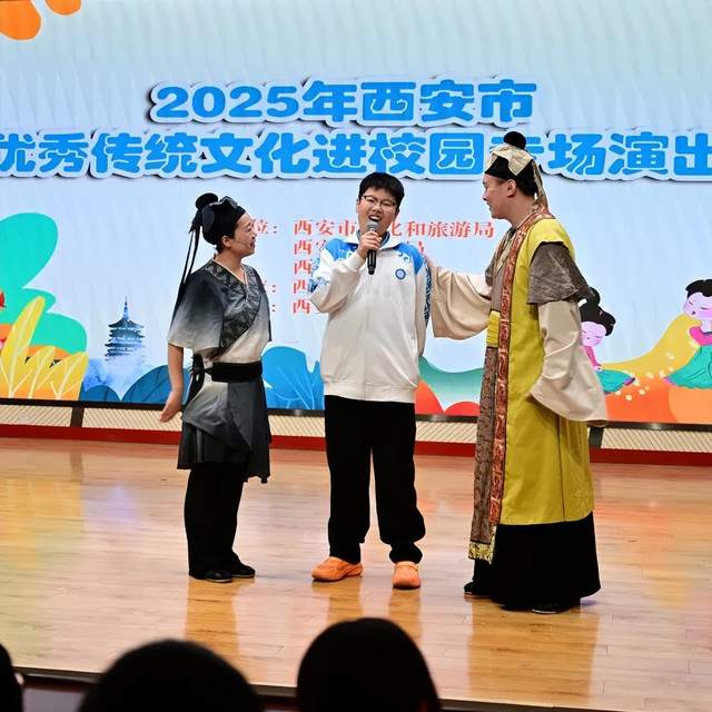 晨光拂过古城墙脊,书声与戏韵在校园上空交织。近日,由西安市文化和旅游局、西安市财政局、西安市教育局联合主办,西安演艺集团承办,西安儿童艺术剧院演出的“2025年西安市优秀传统文化进校园”活动,携国风儿童剧《劝学三迁》走进西安市西光中学,以戏剧为媒,展开一场传统与现代的深情对话。