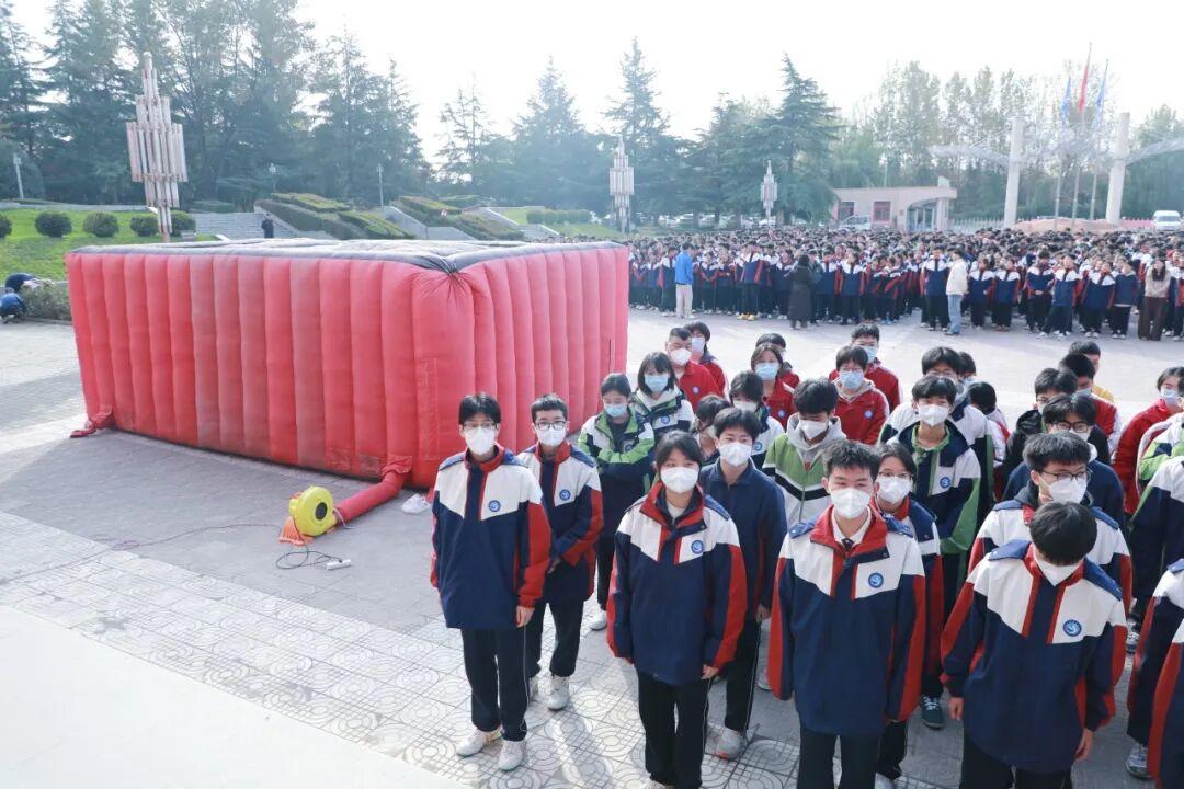 练活动开始前,学校提前为各班级学生代表统一发放口罩,确保学生在体验模拟逃生棚、接触浓烟环境时,能进一步做好防护,保障呼吸安全。消防逃生帐篷作为本次演练的 “核心装备”,内部模拟了火灾发生时的浓烟环境与复杂通道,能最大限度还原真实逃生场景。西安思源中学安保中心提前对帐篷进行安全检查,确保设备完好,同时在帐篷周边设置引导标识与安全缓冲区,为师生的演练安全保驾护航。