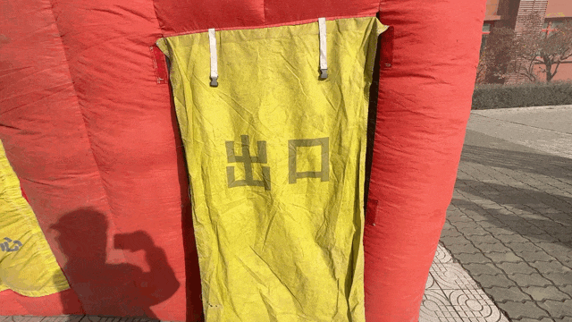 当师生抵达指定区域后,演练进入关键环节 —— 消防逃生帐篷体验。在安全员的引导下,学生们分批进入帐篷。帐篷内光线昏暗,充满模拟浓烟,通道狭窄且设有弯道,极大地考验着大家的判断力与逃生技巧。同学们牢记之前所学知识,保持冷静,凭借对逃生路线的记忆和安全员的指引,成功穿越帐篷,抵达安全地带。