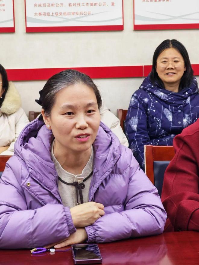 在温馨的回味中,教师代表依次发言,分享与张老师共事的珍贵记忆。数学组的同仁们动情回忆,张老师不仅是严谨细致的教学能手,更是毫无保留的“引路人”——她的教案总是向年轻教师开放,她的解题思路总愿与团队分享,她带领数学组攻克了一个又一个教学难题,张老师那份“润物细无声”的关怀,曾温暖过许多同事的职业生涯。“她的这份从容与智慧,深深影响了我们。”一位青年教师感慨道。言语间,三十八年并肩耕耘的情谊,化作满室暖流。